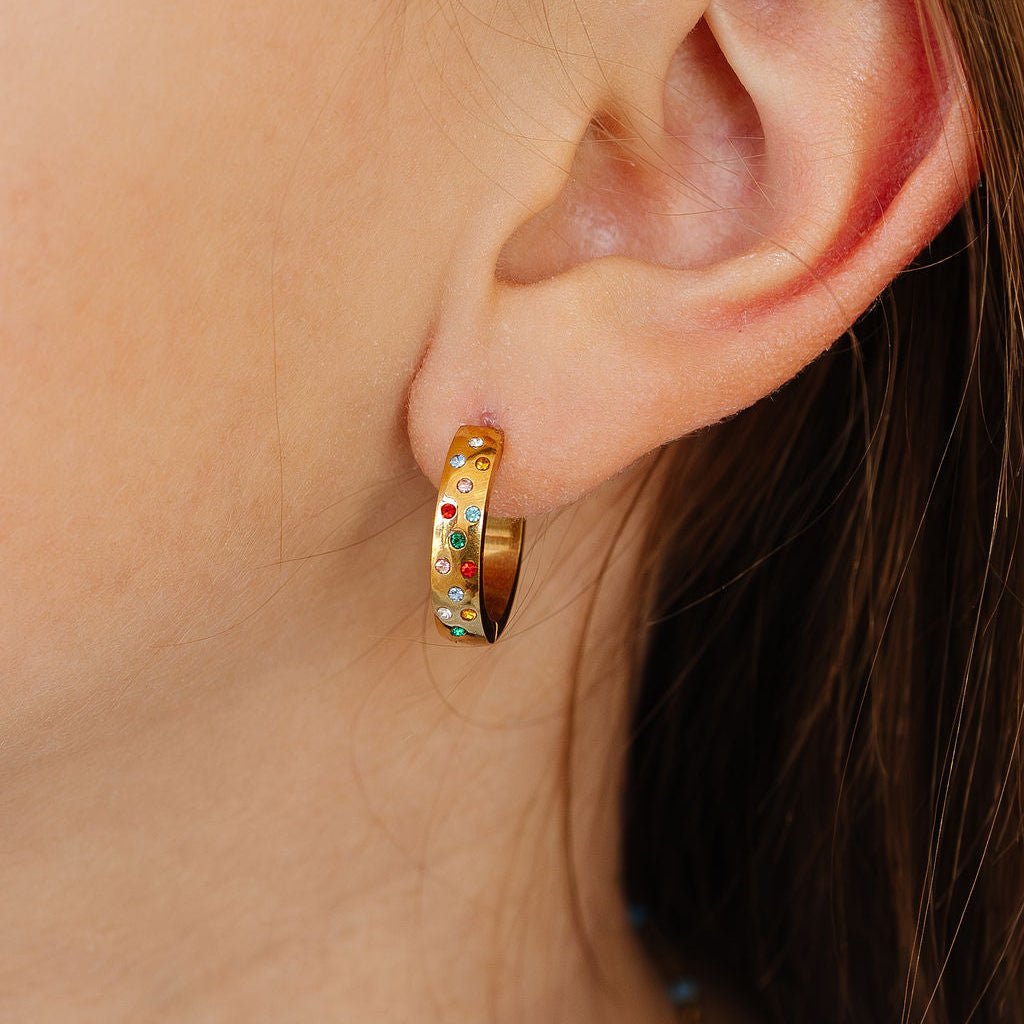 Designed for the days you want a little sparkle. The Confetti Hoop is lightweight, easy to wear, and adds just the right amount of shine, whether you choose playful Rainbow or classic Diamond.