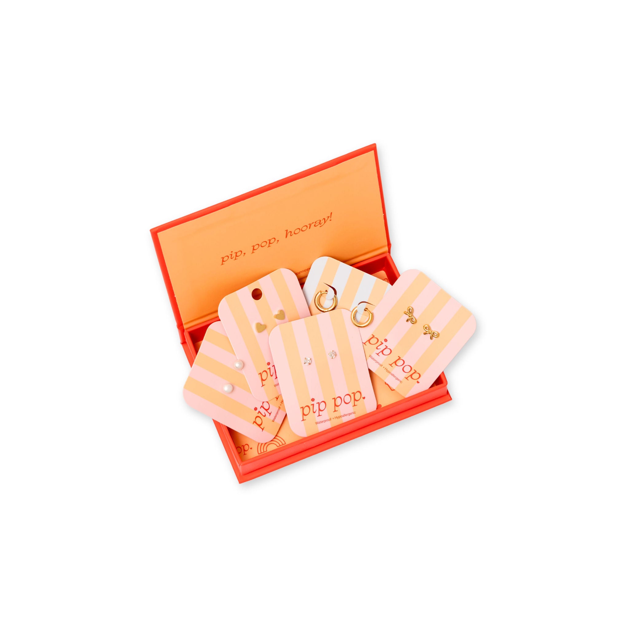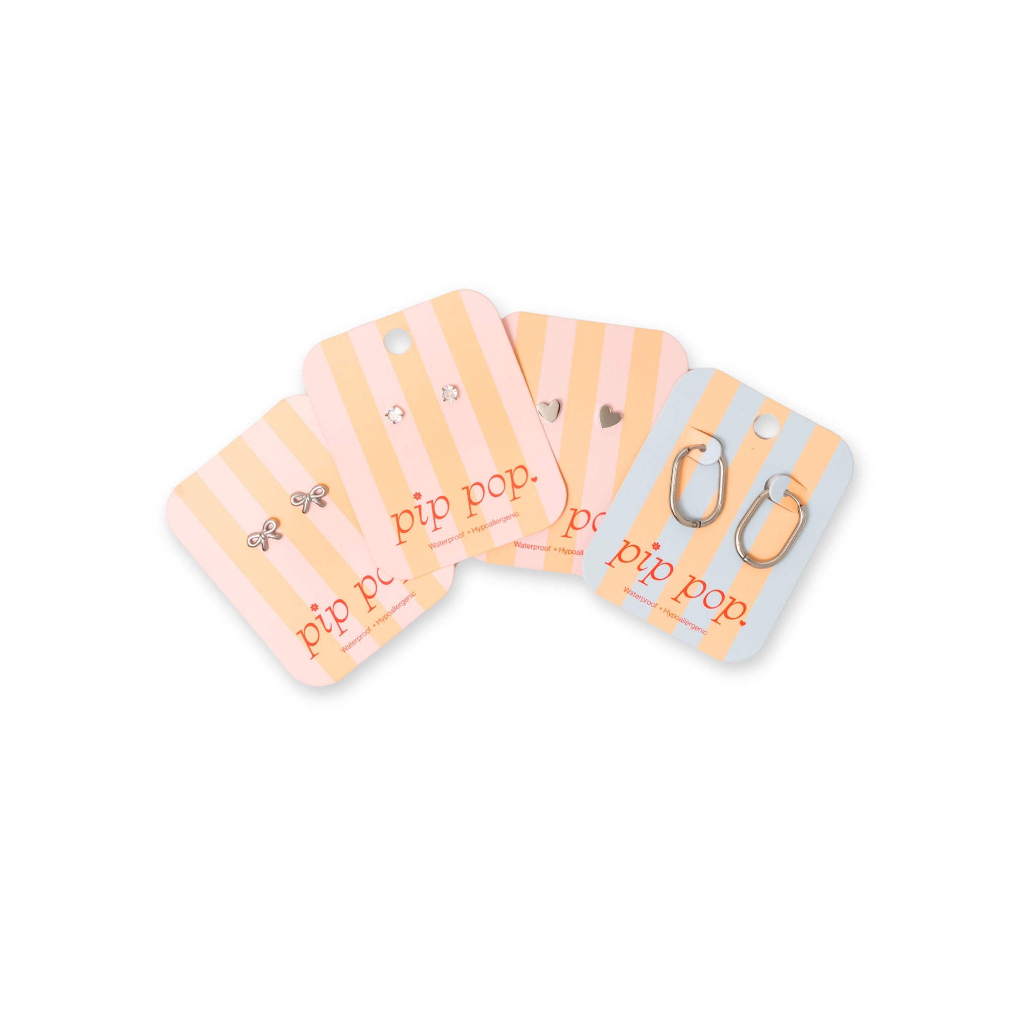 A number 3 earring on packaging with 'pip pop' branding on a white background