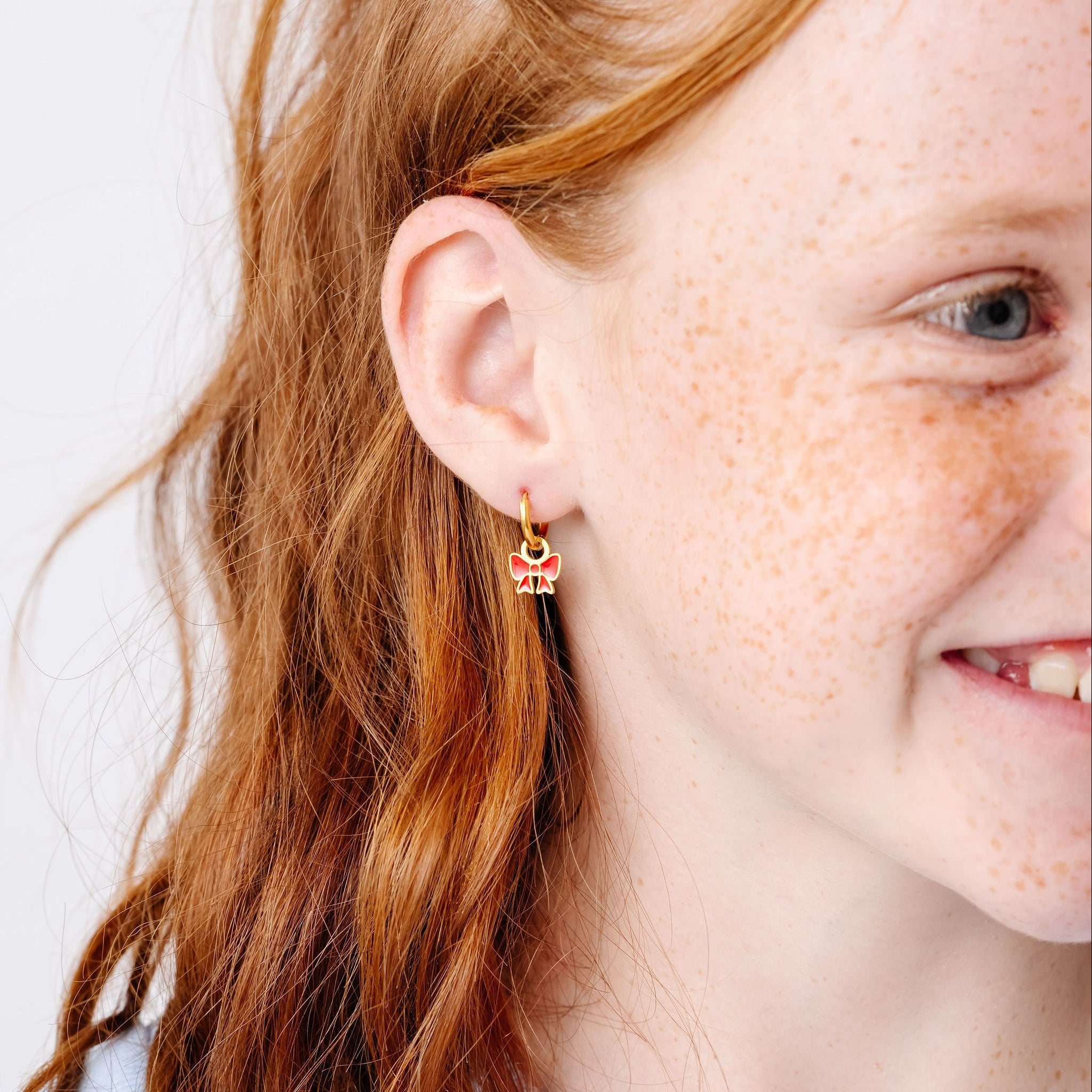 Girl wearing sunglasses with a clear blue sky and palm trees in the background earth earrings